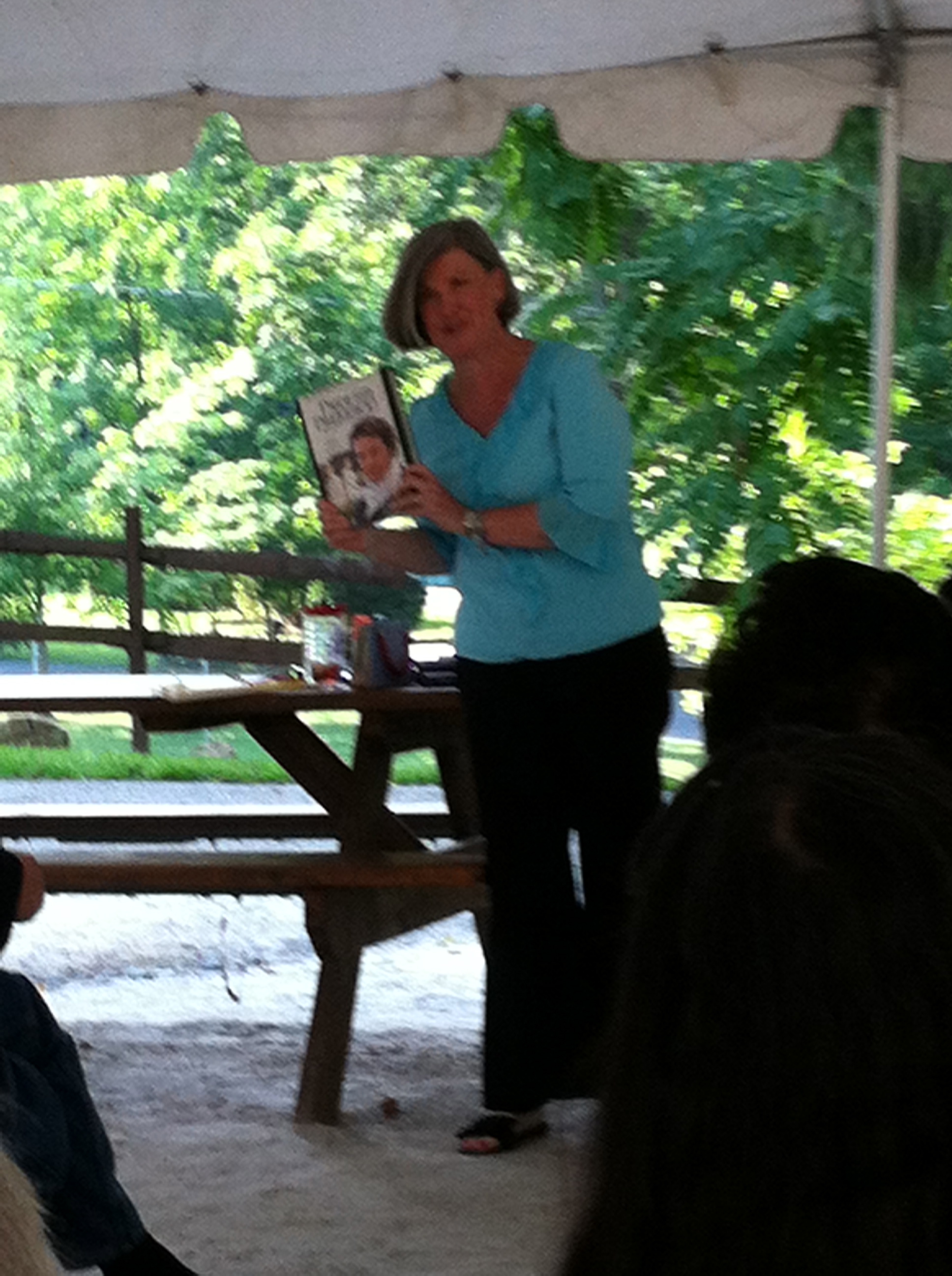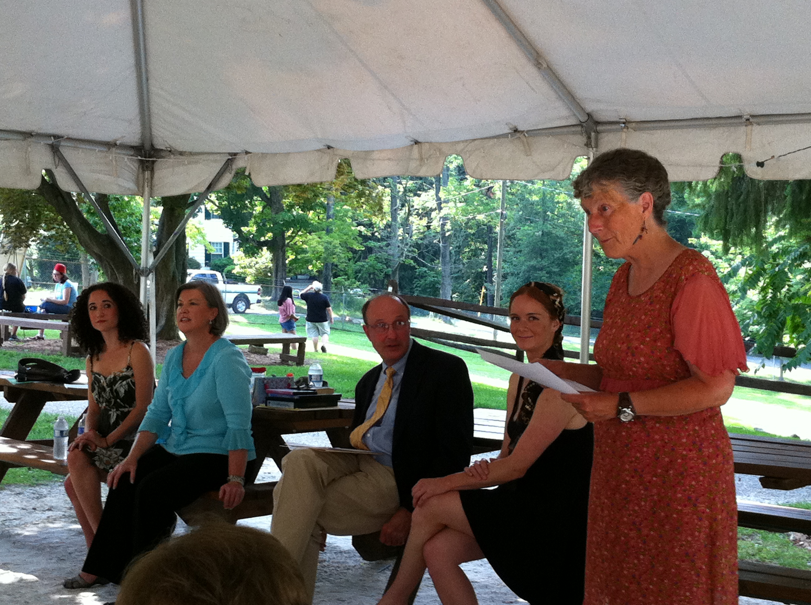 My lovely daughter Maggie, my sister Margie, my husband Bill and I headed to Ellicott City’s Patapsco Female Institute (the stabilized ruins of an old girls school that is now an open air theatre and part of the Howard County Park System) where we met our friends Lynn Reynolds, Chris and Matt. There we split up to handle Game Duties and the JASNA recruitment table.