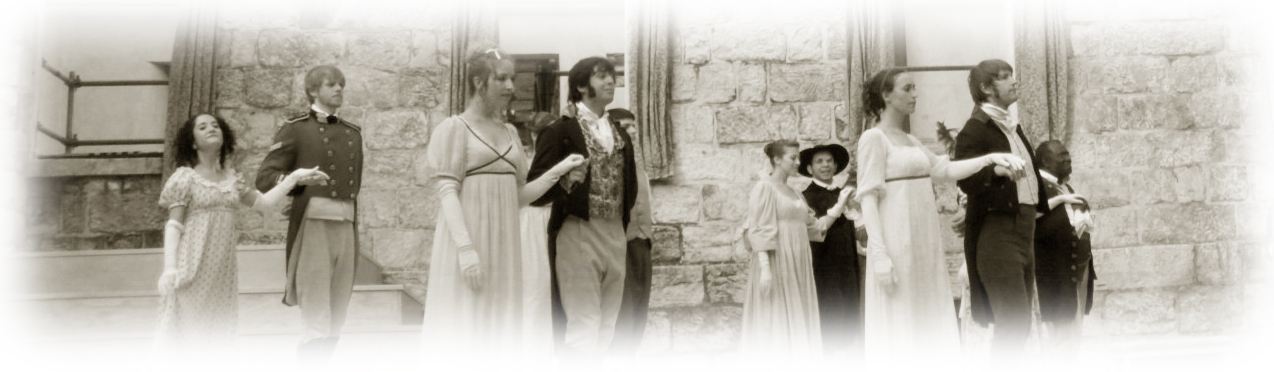 As you may recall from Will (and Jane) This Summer in B’more (June 6) THIS past Friday, Saturday and Sunday was Regency Weekend at the Chesapeake Shakespeare Company (CSC). The acting troupe put on Christina Calvit’s adaptation of Jane Austen’s delightful Pride and Prejudice. The Jane Austen Society of North America: Maryland Chapter (JASNA:MD) joined forces with CSC on Sunday for our Summer meeting, and I came by with some family and friends on Saturday to help with a Game Tent and to drum up some interest in JASNA.