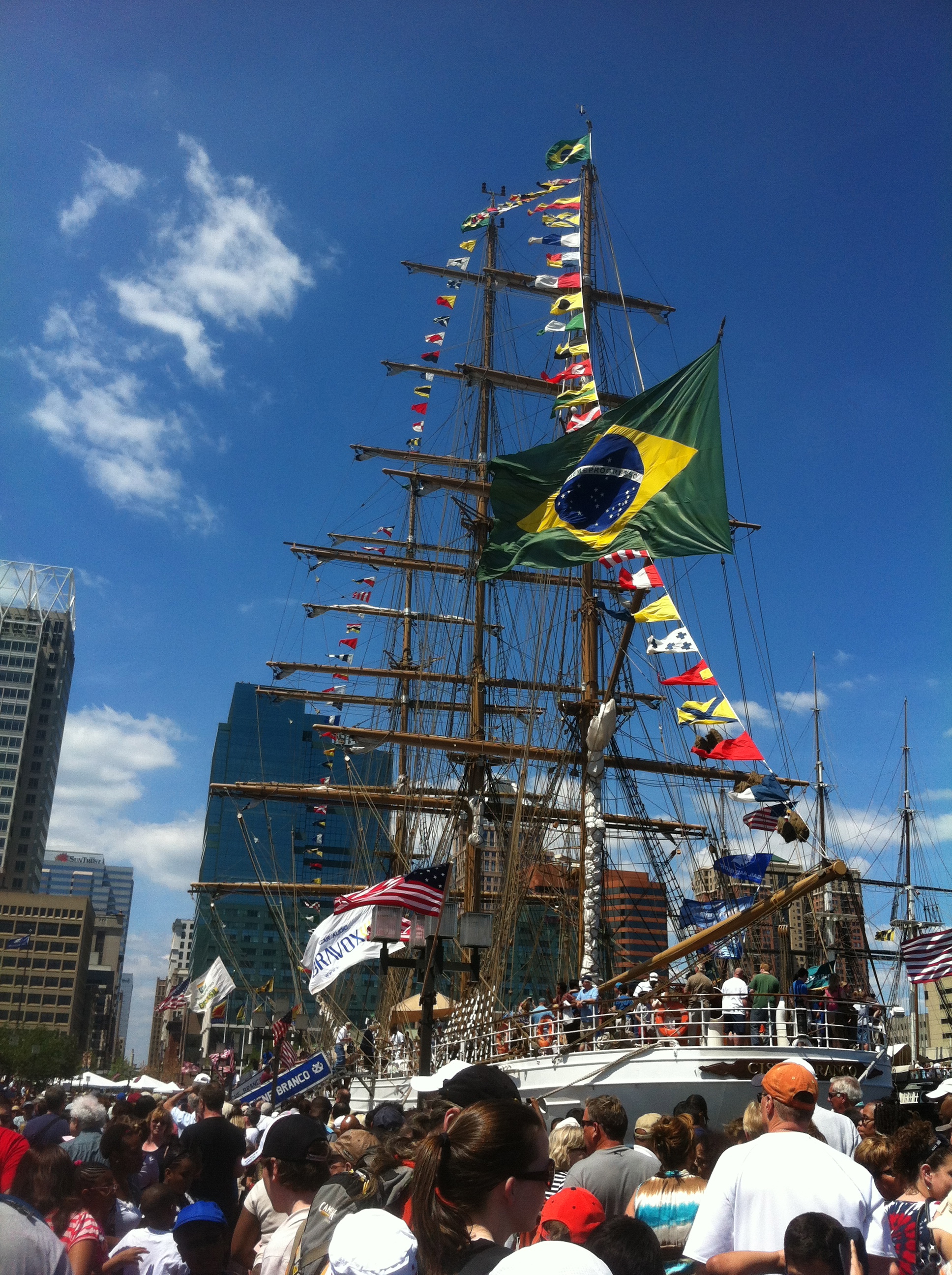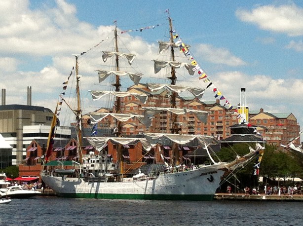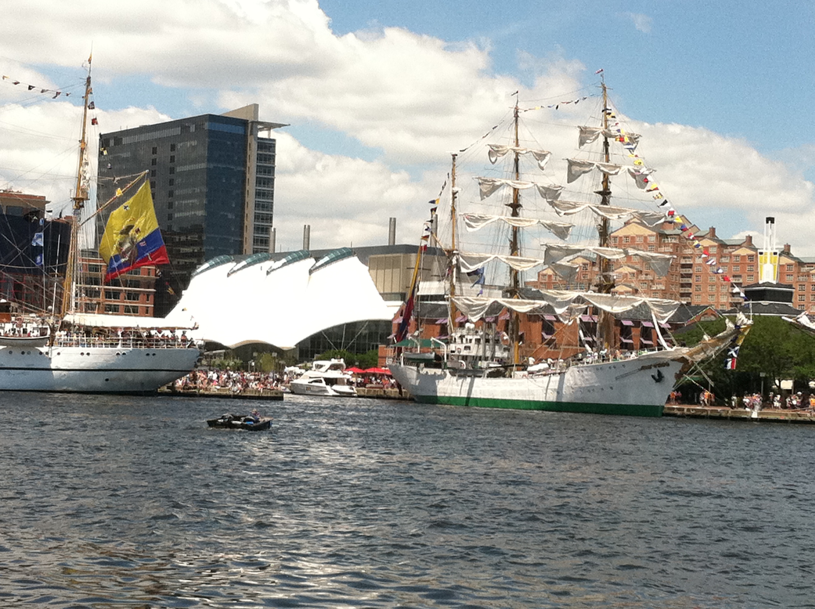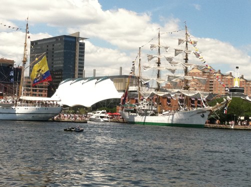 Free tours began on the ships at the Inner Harbor, Fells Point and Locust Point. And there was a concert and the Sailabration Festival Villages at Rash Field and Broadway Pier opened their stalls.