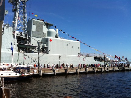 Warships, like the Canadian Iroquois docked at Fells Point, debark from 7:00 to 11:00 am on June 19th.