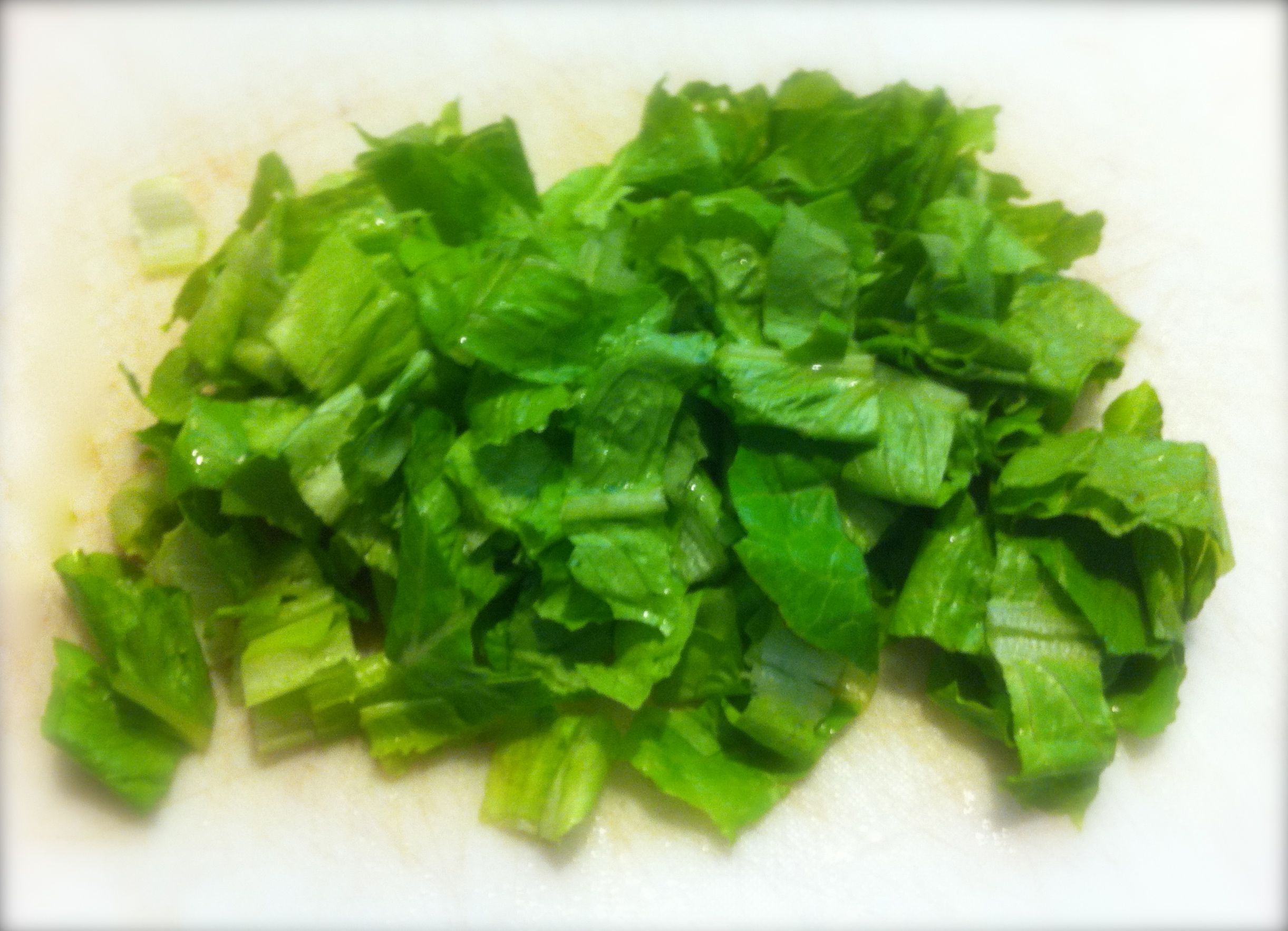 7. Plate over romaine and top with a tablespoon of grated cheese.