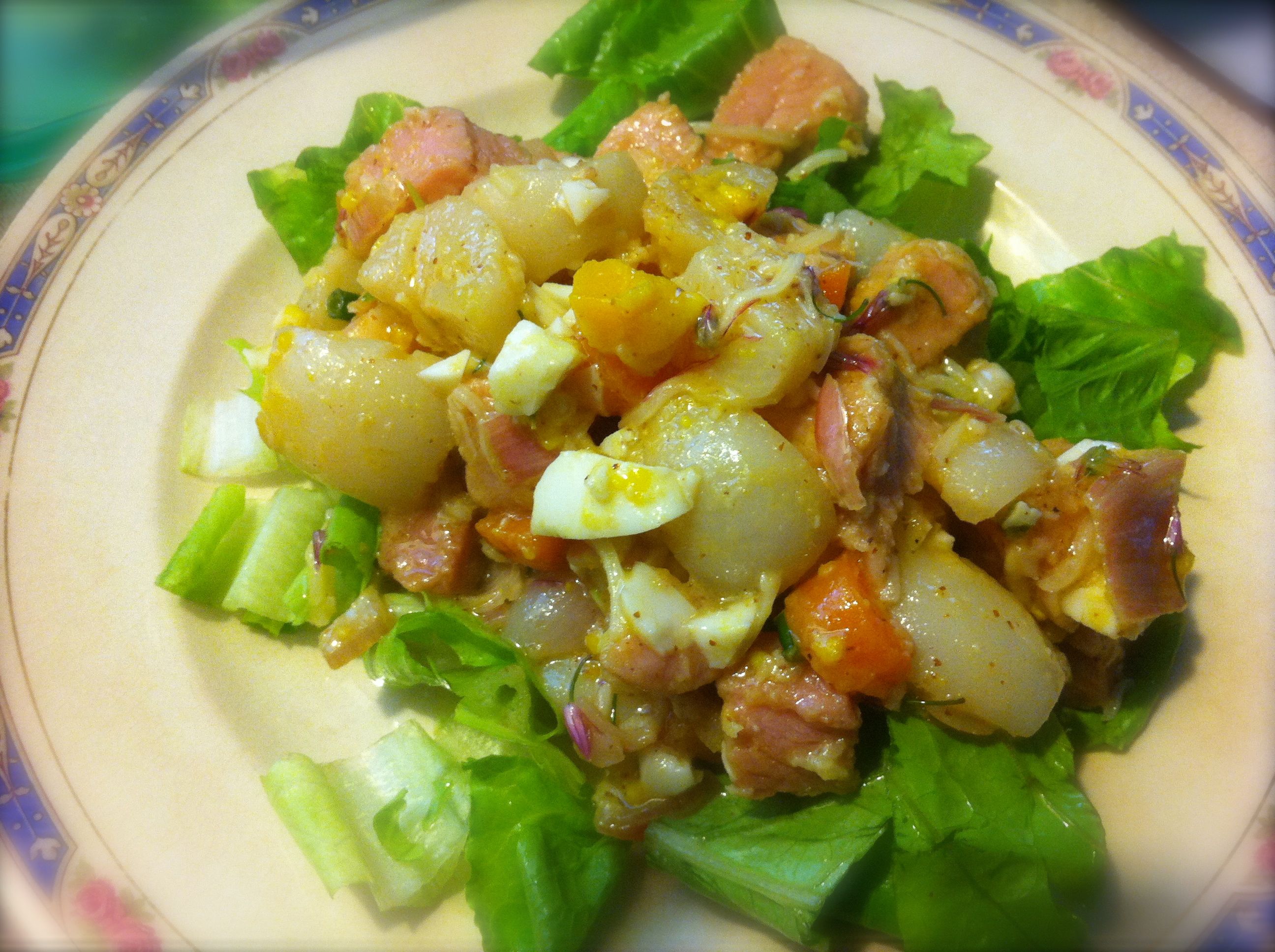 With that in mind I’ve decided to dedicate one blog a week to a recipe based on something I cooked from the box. Today is the first installment. — Turnip and Ham Salad.