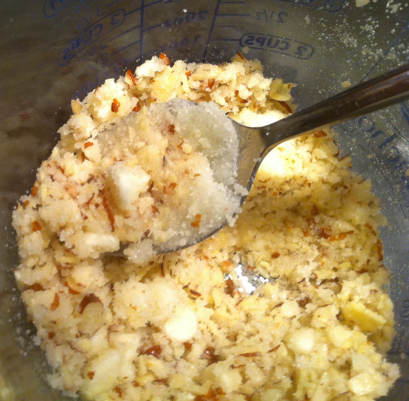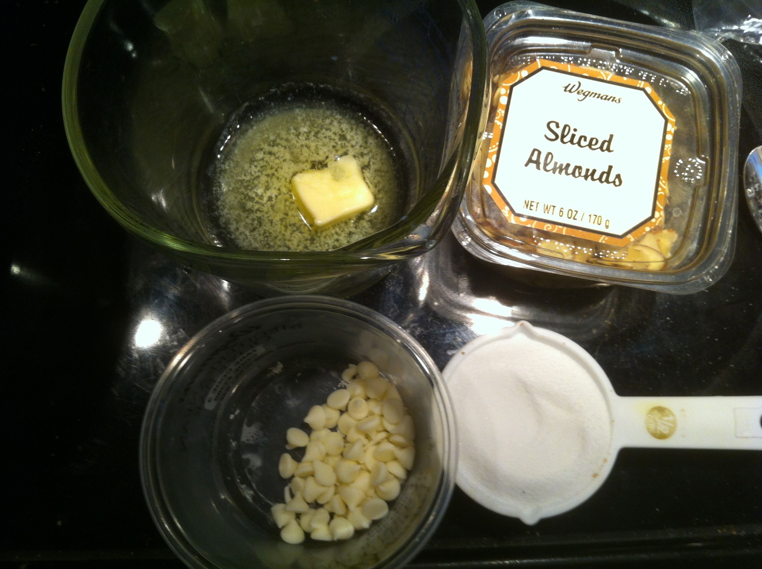 10. Combine the Nuts, Sugar and ground Almonds together in the measuring cup. Add the White Chocolate Chips.