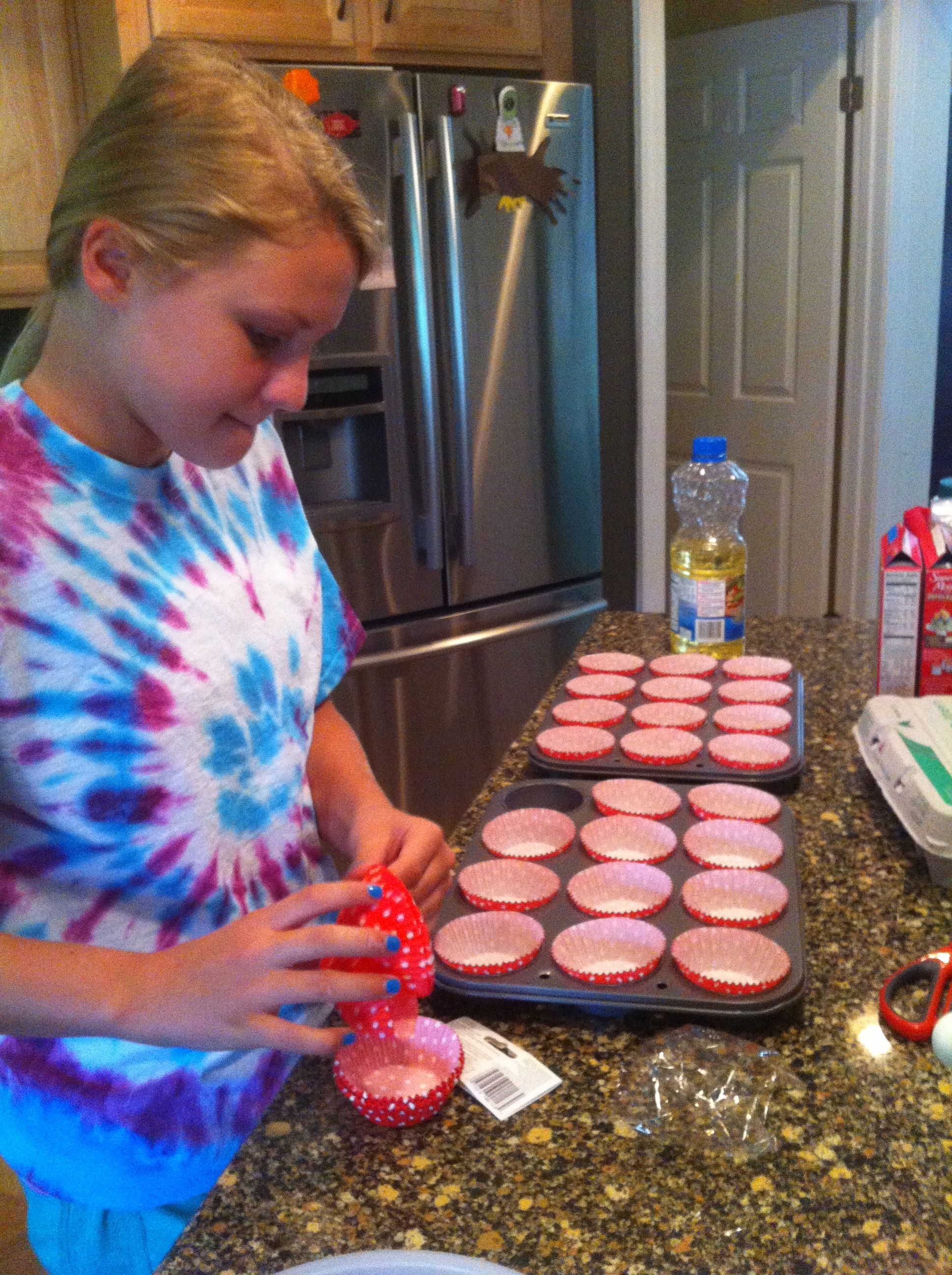 4. Divide the batter into 22 to 24 cupcake cups. (Maggie’s made 23 cupcakes).