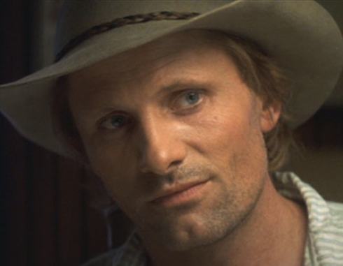 He did some theatre then expanded to film. His footage in 1984’s Swing Shift and Woody Allen’s The Purple Rose of Cairo ended up on the cutting room floor, but he had more luck in Peter Weir’s Witness. Mortensen played Moses Hochleitner, the younger brother to Alexander Godunov’s Daniel Hochleitner. He didn’t have a lot of lines in the Harrison Ford flick, but some how he stood out from the sea of blond-haired Amish men in blue shirts.