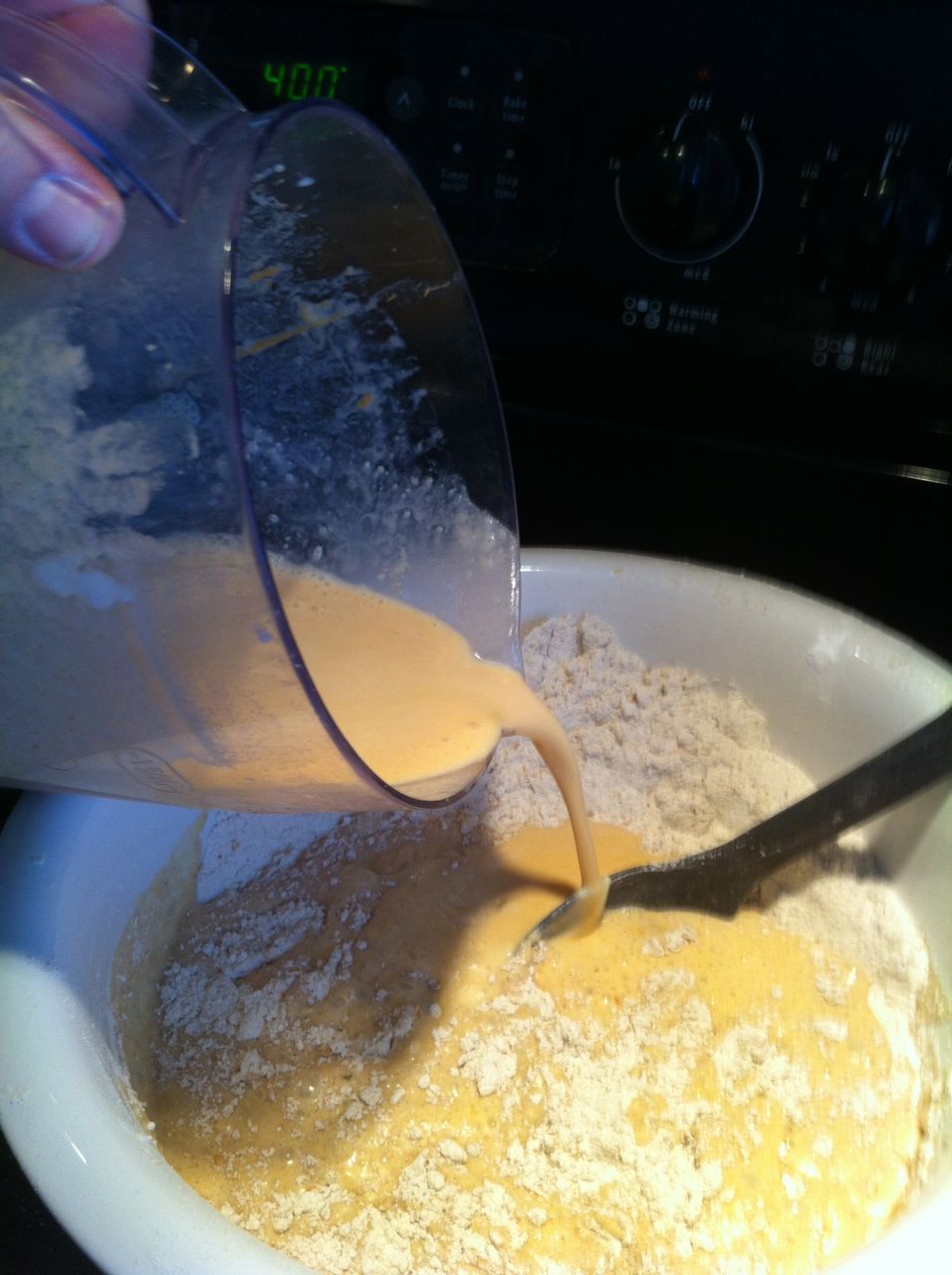 5. Add the liquid to the dry ingredients and combine until moistened.