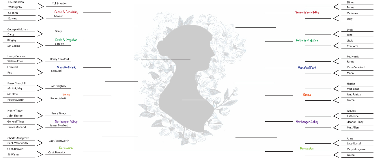 As suspected there was some serious court action over who would rank as top male player for each Austen book. There was much debating and deal making. But here, dear readers, is the tally for the last round…