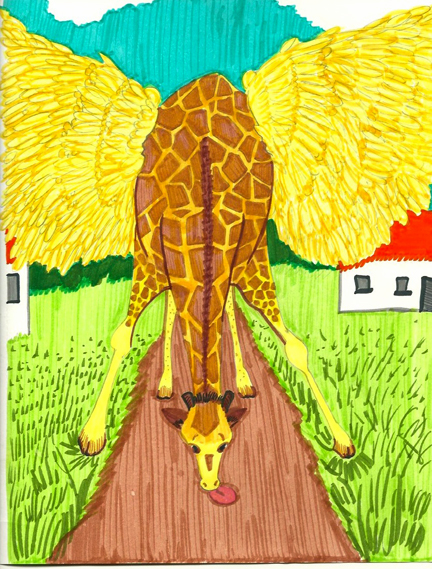 Later, as the giant animal took flight, Juan turned to Brother Christos. “Why didn’t you tell me a Mangahoota is a flying giraffe?”