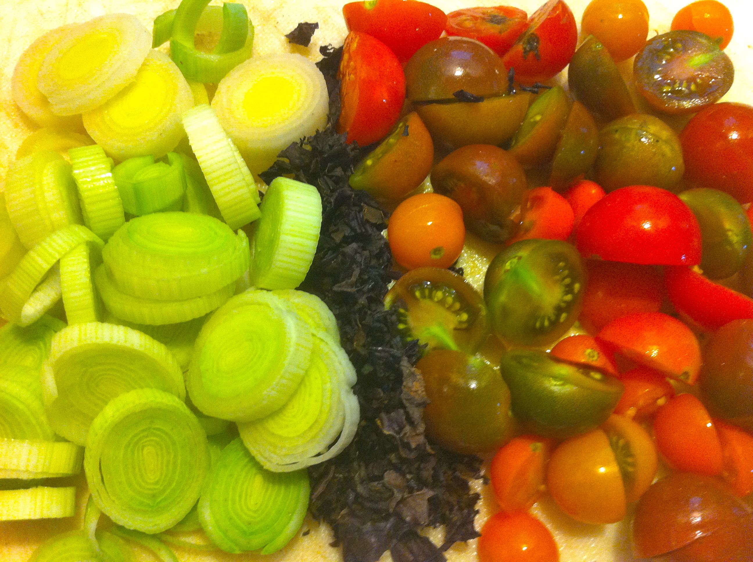 Chaos at the ritaLOVEStoWIRTE test kitchen “studio” this week prevented my taking a “box shot” of our CSA goodies so I took a shot of the pertinent ingredients instead.