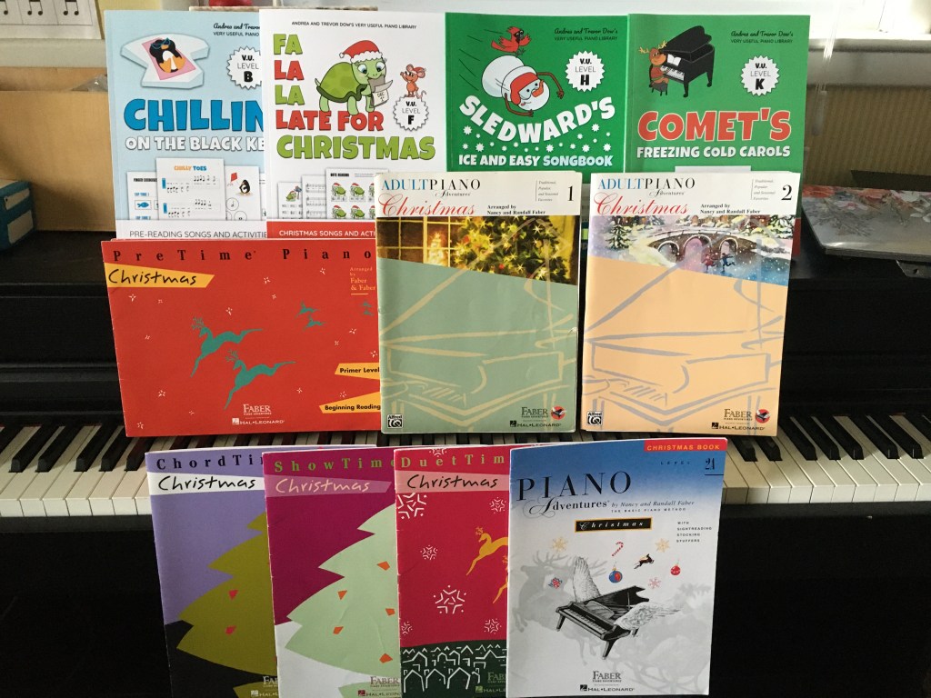 I’ve begun to introduce piano and ukulele book options for the Holiday season for my students this week. And I’m including them here for easy access.