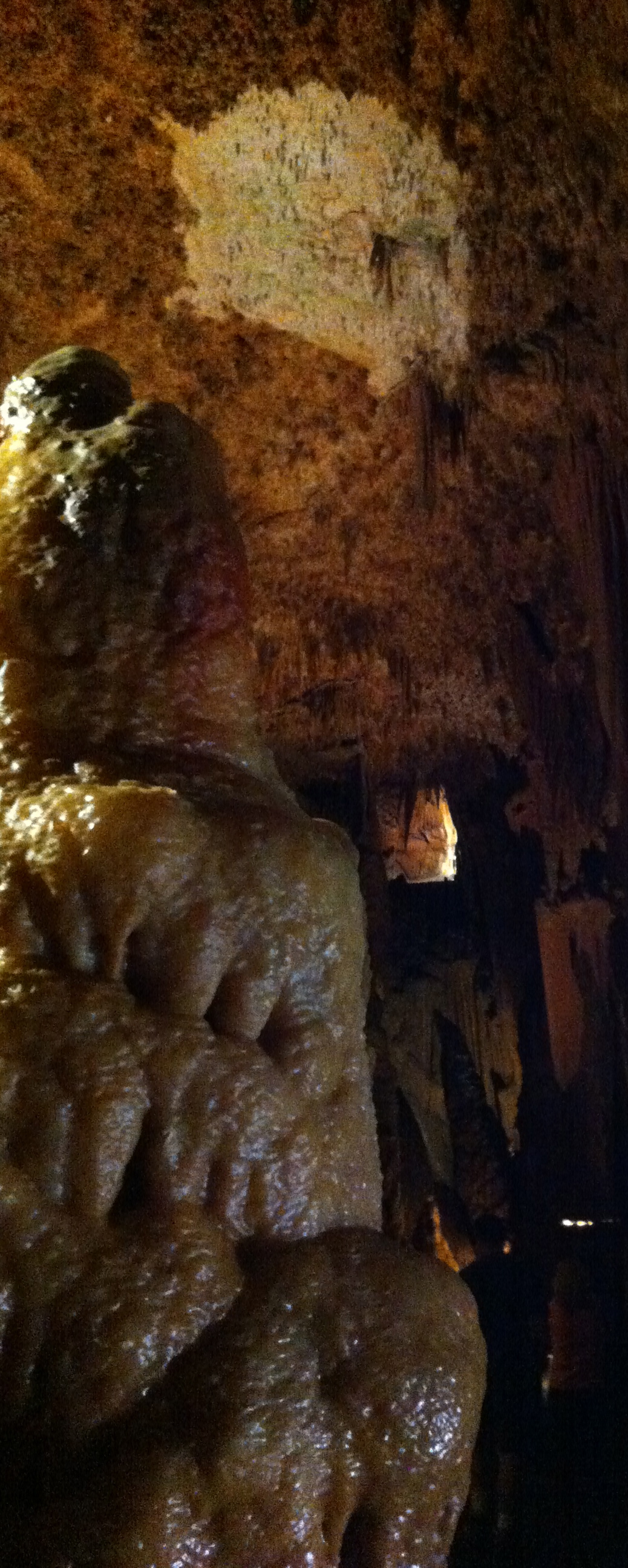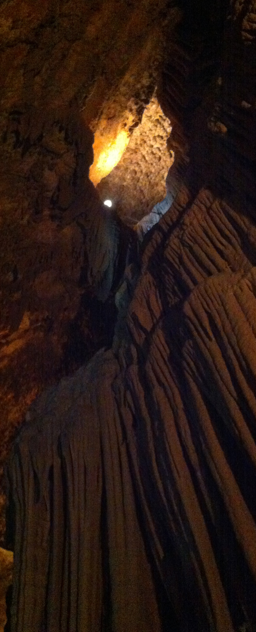 The ceiling of the carport and the entrance hall are low, but it doesn’t feel claustrophobic. You can see the living room directly opposite the front door and Wright used a sense of compression and release to encourage visitors to go through the entrance into the more important area of the house. The LIVING room was for living, after all. He brings you down a short set of stairs while keeping the ceiling line constant and suddenly the space feels massive. The ceiling height here is 12 feet.