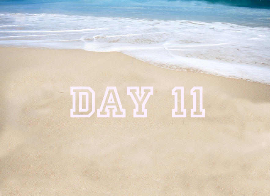 Beautiful tropical beach with the word summer written on the sanSince I’m doubling you up to get in Day Nine because of my computer flaw (– you don’t think it has anything to do with what happened on Wall Street, do you?) I am going to totally give you the green light to marry day nine and ten in your creative bliss today…
