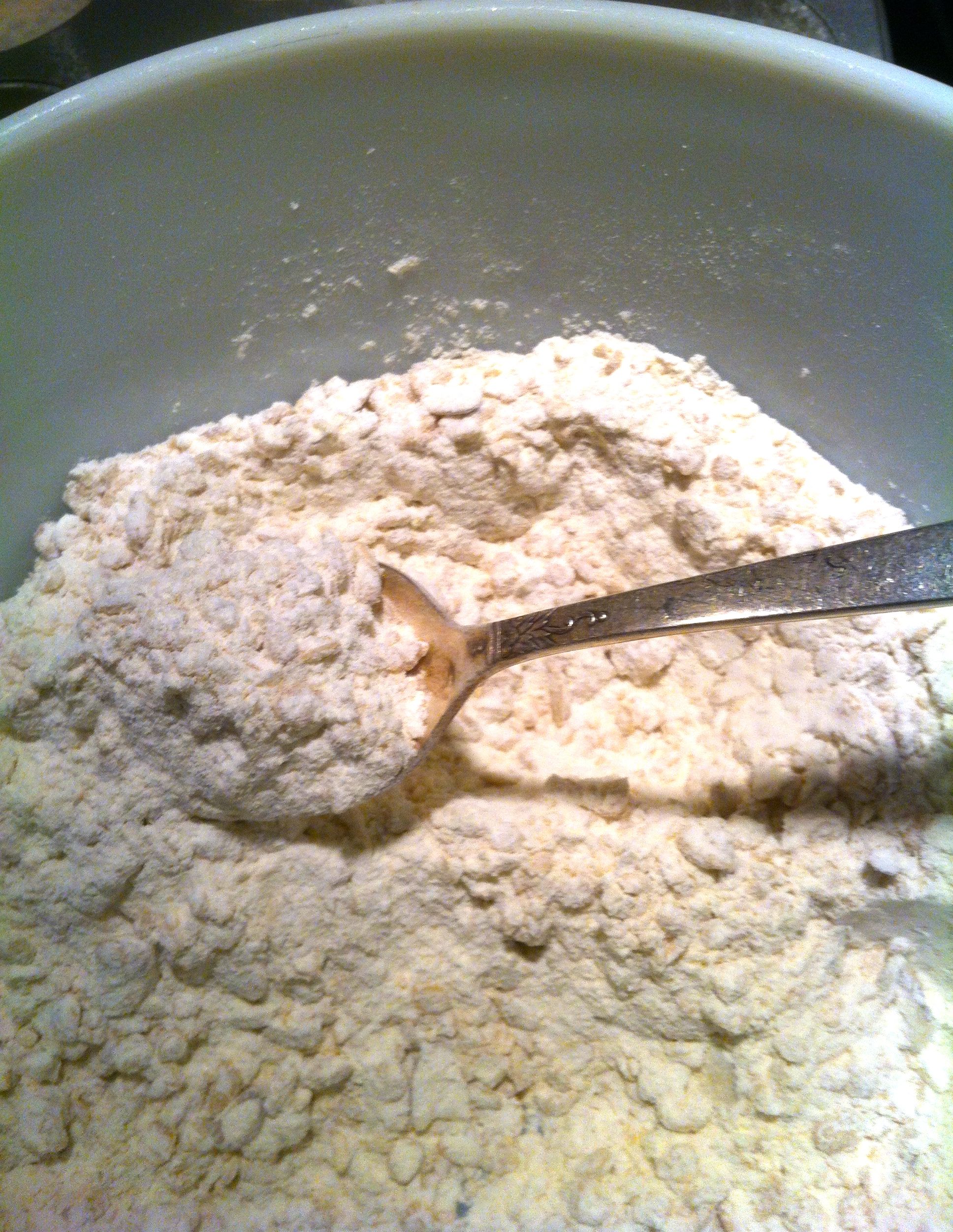 4. In a medium bowl combine the regular Flour, the Buckwheat Flour, the Baking Powder and the Salt.