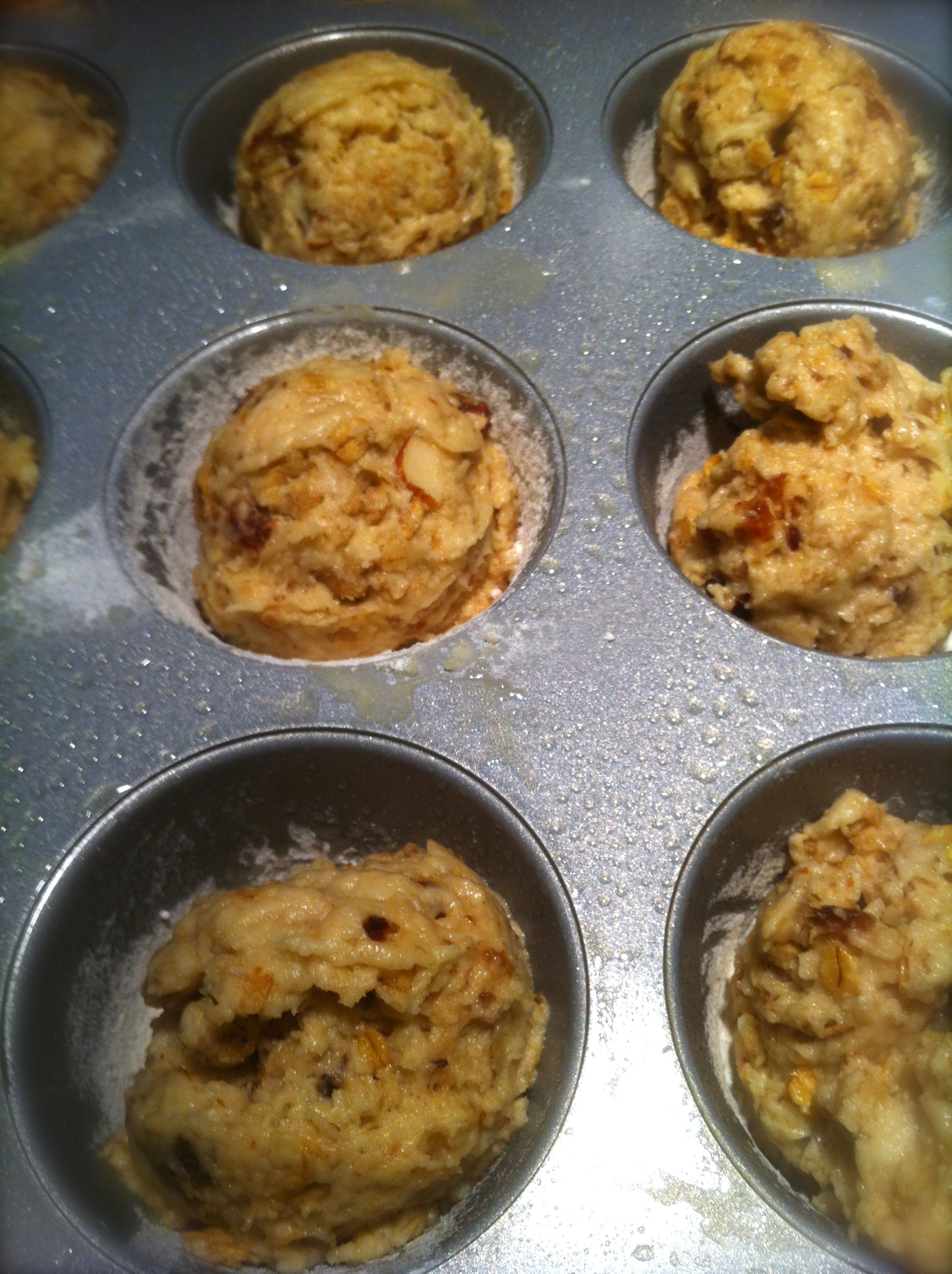 1. Preheat oven to 400 degrees. Prep muffin cups by spraying with cooking spray and dusting with flour.